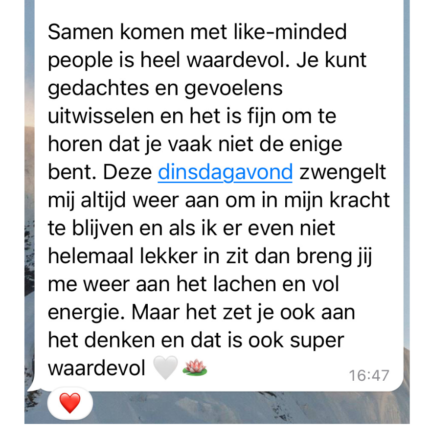 Ook is er de mogelijkheid om te connecten met elkaar en zul je ervaren hoe fijn het is om mensen om je heen te hebben die ook met persoonlijke ontwikkeling bezig zijn. Hierdoor zul je zelf ook veel sneller uplevelen.